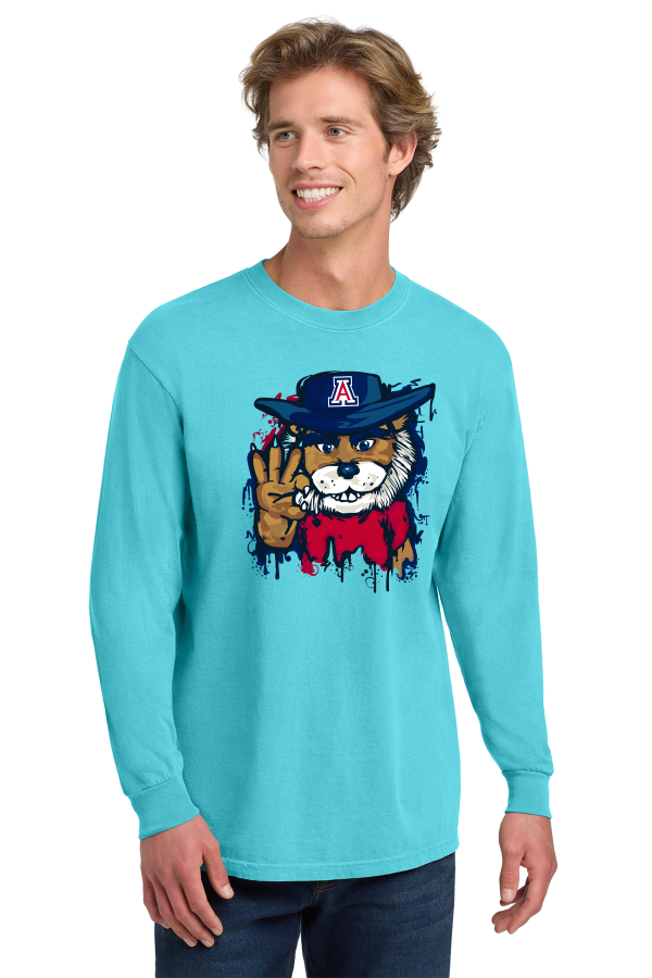Introducing the Wildcat Graffiti Cat Tshirt - Available in three unique colors, show your Wildcat pride with this unique style. Decorated with Full Color Wilbur Graffiti logo from Garment Graphics. A Comfort Colors Heavyweight Ring Spun Long Sleeve tshirt. 6.1 oz, 100% US ring spun cotton, soft washed, garment-dyed fabric. A super comfortable tshirt for casual days cheering on the Cats!